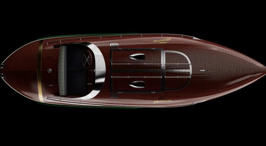 تبلغ السرعة القصوى لهذا القارب 30 عقدة، وتزدان جنباته كلها بتفاصيل من الخشب، إحياءً لذكرى ذلك العهد الذي كانت فيه القوارب تُصنع حصريًا من هذه المادة. ومع ذلك، تزهو المساحات الداخلية بتصميم حديث، فيما تغلب على المقصورات ألوان محايدة تمزج بين لون الخردل واللون الفيروزي.