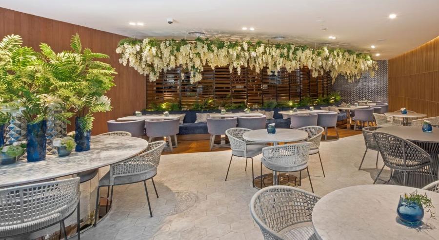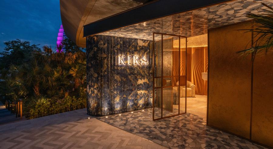 ما إن تطأ أعتاب مطعم "ألايا" Alaya في مركز دبي المالي العالمي، حتى تخال أن قدمك قد زلت بك إلى حقبة الآرت ديكو، على ما تشي به معالم تصميم أنيق تغلب عليه لوحة ألوان تشكلت من تناغم أرضيات خشبية وأسطح رخامية ومقاعد جلدية وثيرة تزدان بلون اليشم، وخطوط هندسية جريئة يكرّسها خصوصًا سقف متعدد الطبقات في مركزه، يتدثر بكسوة من المخمل وتفاصيل من المرايا العاكسة.