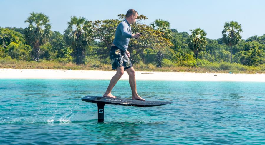 يختلف هذا اللوح بشكل كامل عن مختلف النماذج التي ذكرناها اليوم، إذ يعتمد بشكل كبير على تصميم القوارب المُحلقة بدلاً من ألواح التزلج التقليدية، وهو يحقق بفضل المروحة المصنوعة من ألياف الكربون سرعات أكبر كثيرًا مقارنة بمنافسيه.