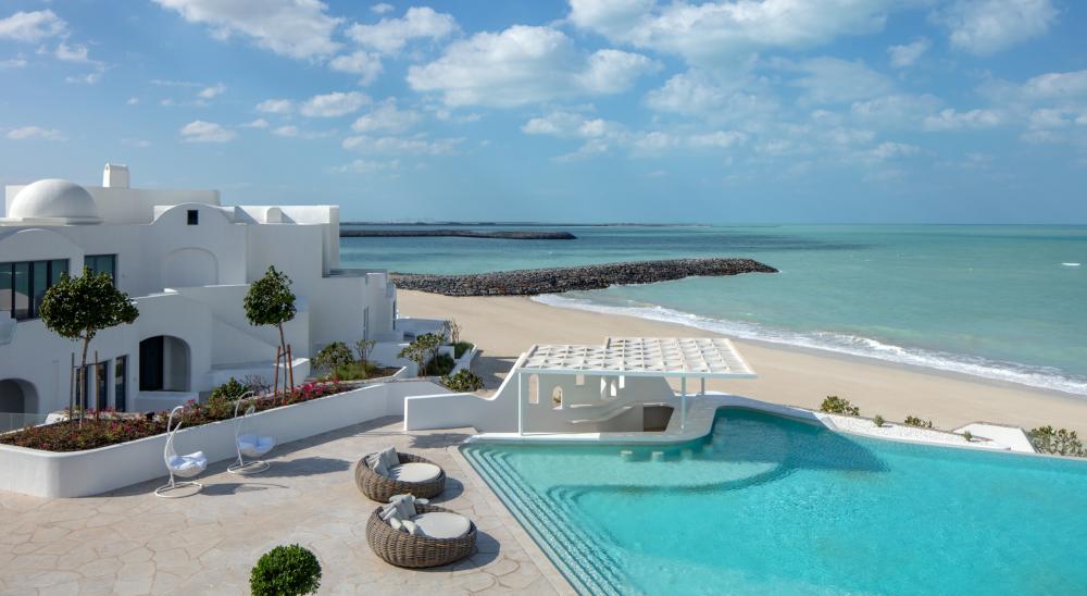 قد تكون تلبية هذه الرغبة، لكن في سياق مفهوم الفخامة الراقية، هي التي حدت بعلامة أنانتارا الرائدة في قطاع الضيافة إلى استنساخ أجواء هذه الجزيرة اليونانية في منطقة غنتوت البعيدة عن المراكز الحضرية الصاخبة. في هذه المنطقة التي تقع بين أبوظبي ودبي، جرى افتتاح ملاذ أنانتارا سانتوريني أبوظبي، الذي يدعو الباحثين عن الرفاهية المطلقة وأقصى درجات الخصوصية إلى تجربة متمايزة.