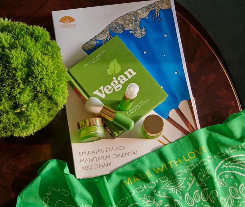 يمعن فندق قصر الإمارات ماندارين أورينتال أبوظبي في تقديم تجربة ضيافة تنهض على المنتجات النباتية بوصفها فكرًا وفلسفة. فلا يوجد هنا مثلاً مكان لبطاقات المفاتيح البلاستيكية، إذ استُبدلت بها بطاقات مفاتيح خشبية. ولجعل الإقامة ممتعة تمامًا، تمتد الخيارات النباتية إلى ما وراء الغرف الفاخرة؛ إذ يعمل الفندق أيضًا على ضمان إمكانية الاستمتاع بخيارات نباتية في المنتجع الصحي الشهير.