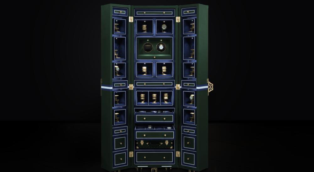 في الداخل، تتخذ كل ساعة موقعها على حامل «ووتش سنتينل» Watch Sentinel المميز للدار، المصمم بآلية مسننة تتيح تعديلاً سلسًا ليناسب مختلف قياسات المعصم، في انسجام مع التعقيدات الميكانيكية التي تميز أرقى الساعات العالمية. يضم الصندوق أيضًا نظامًا لتدوير للساعات الأوتوماتيكية، ووسائد جلدية لحفظ القطع، إلى جانب مرآة مخفية تمنح لحظة تأمل، وحجرة مخصصة لأدوات الساعات، مرتّبة بعناية لتخدم المالك.