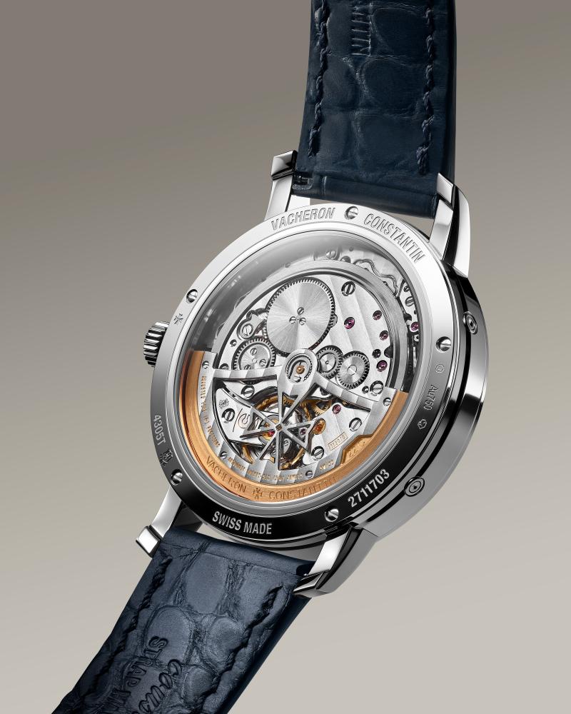 لطالما كانت فاشرون كونستانتين خبيرة بتطوير آليات حركة نحيفة تشتمل على التعقيدات الكبرى، ولم يتغير الحال في النسخ الثلاث لهذه الساعة الراقية، إذ تنبض بآلية الحركة ذاتية التعبئة Calibre 1120 QP، التي توفر احتياطيًا للطاقة يدوم 40 ساعة ومقاومة لضغط الماء حتى عمق 30 مترًا. ويمكن معاينة مكونات هذه الآلية الرفيعة عبر غطاء الجزء الخلفي المشغول من البلور الياقوتي، ولا سيما التشطيبات الرفيعة وزخارف كوت دو جنيف المنقوشة على الوزن المتذبذب المشتمل على قسم خارجي من الذهب والمتمايز بتصميم على هيئة رمز مالطا الشهير.