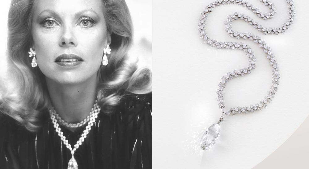 - عقد هاري وينستون الذي تتوسطه الألماسة الأسطورية Briolette of India زنة 90 قيراطًا، والذي يتوقع أن يجلب نحو 10 ملايين دولار.