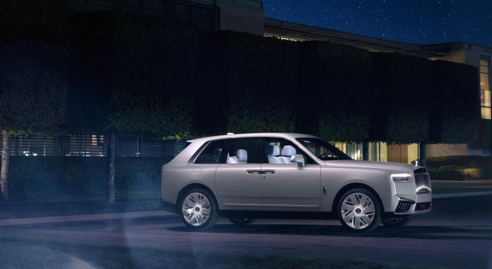 لم يتوقّف إبداع بيسبوك عند السقف، بل امتد إلى كل زاوية من تفاصيل رولز-رويس كالينان كوزموس، فجاء الطلاء الخارجي بلون اللؤلؤ الأبيض الرمادي المستوحى من بريق القمر في سماء الليل، ما منح السيارة حضورًا هادئًا وآسرًا في آنٍ معًا.
