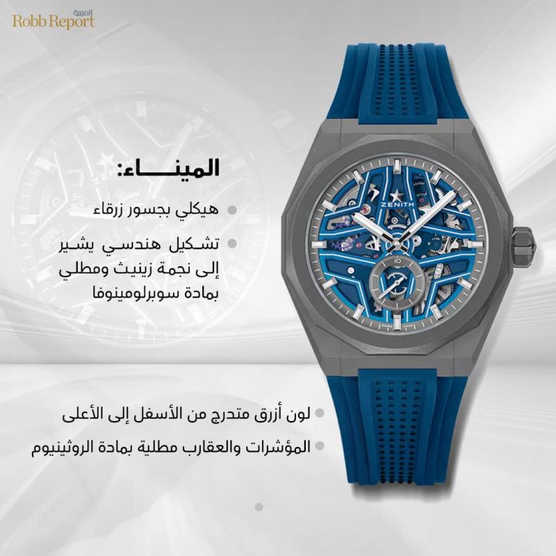 إلى جانب السوار المصنوع من التيتانيوم، يمكن تنسيق ساعة DEFY Skyline Skeleton Night Surfer El Primero المحدودة في 200 نموذج فقط، مع حزام مطاطي أزرق بلون السماء المتألقة بالنجوم.