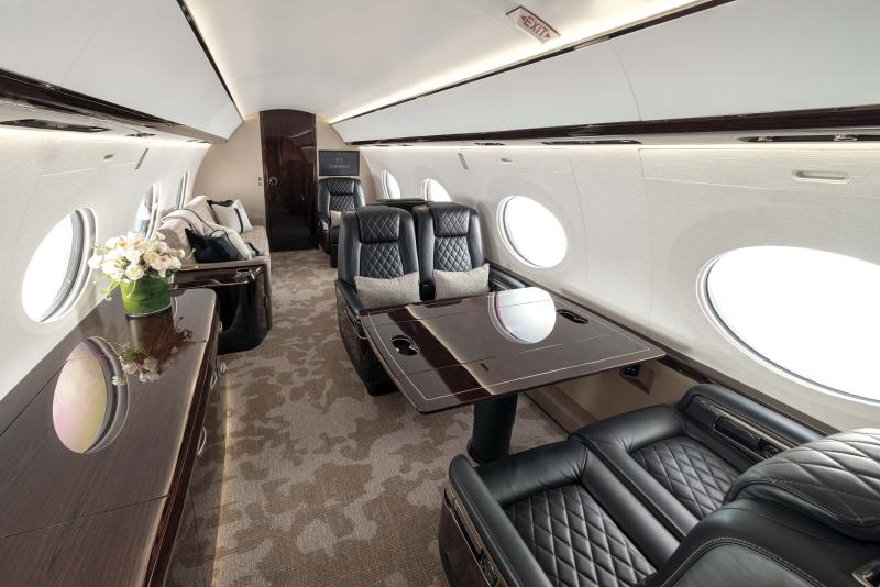 أما الرفاهية، فهي جزء لا يتجزأ من روح التصميم. يتمايز أحد النماذج الأولى من طائرة G800 بمقصورة يغلب عليها طابع يوحي بالسكينة وتكرّسه كسوة من خشب الينجي، وجدران جانبية مكسوة بقماش محبوك يزهو بلون محايد، وسجاد صوفي فاخر تثريه خيوط من الحرير، وأرضيات من الحجر الأبيض المصقول في المطبخ الجديد والحمّامات.