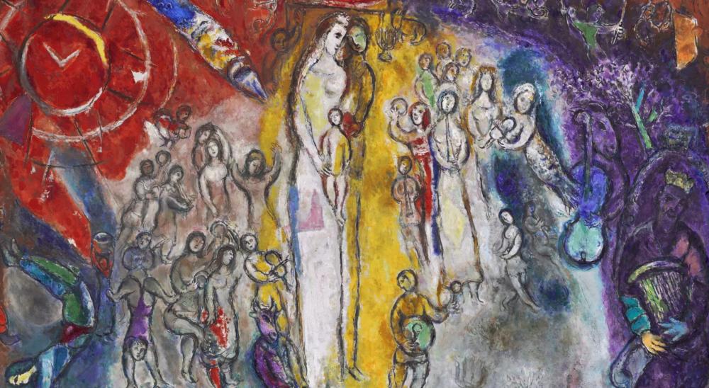 أما العمل الثاني، Le Songe du Roi David (حلم الملك داوود)، الذي أنجزه شاغال بعد ما يقرب من عقدين، في عام 1966، فهو عمل مركّب يستلهم قصة الملك داوود، مقدّمًا مشهدًا رمزيًا غزير التفاصيل، استخدم فيه التكوين المسرحي والألوان الزاهية ليعيد تشكيل لحظة روحية من زاويته الخاصة.