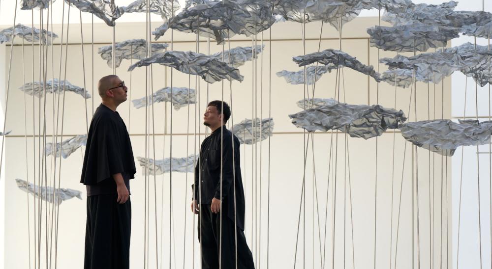 باستخدام مواد صناعية معادة التدوير واستلهام تقنية الحياكة التقليدية "كاواتشي"، أفلح الفنانان في استحداث فضاء شاعري تنبض فيه العمارة بتردد الطبيعة.