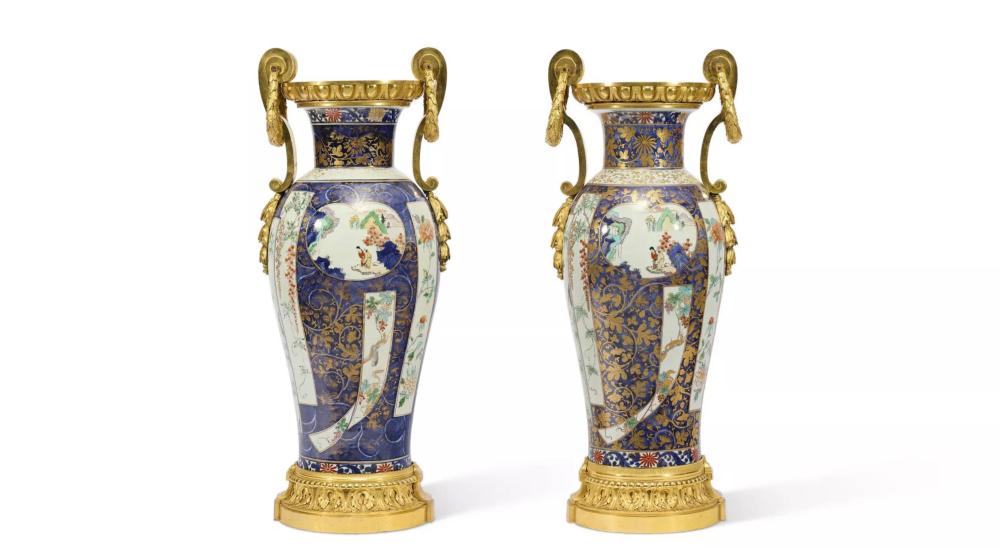 ومن الشرق الأقصى، يبرز زوج من الأواني الصينية العائدة إلى فترة كانغشي، زُوّدت بقواعد أوروبية من طراز الروكوكو، في تزاوج بصري نادر بين ثقافتين. هذه القطع، رغم قيمتها التقديرية الأقل، التي تبدأ من 13 ألف دولار وتصل إلى 21 ألف دولار، لا تقل فخامة عن غيرها.
