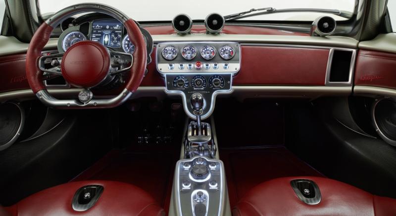 اعتمدت الشركة بدلاً من ذلك عدادات تناظرية سهلة القراءة يكشف كل منها عن جزء من آليته على غرار معيار حركة في ساعة هيكلية. يتجلى أيضًا حرص هوراسيو باغاني على أن يمثل كل مكوّن وظيفي في السيارة فرصة للابتكار في عجلة القيادة التي صيغت من كتلة ألومنيوم صلبة، وفي ذراع تبديل السرعات الذي ظلت آليته مكشوفة ولكن باتت أشد فخامة.