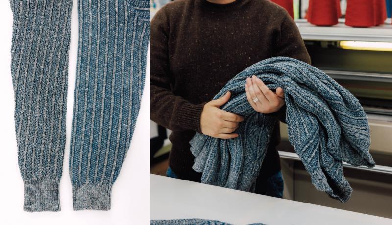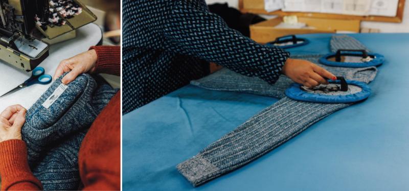 تثبّت آلة ربط دائرية أقسام السترة معًا فيما يطابق الحِرفي المسؤول القطع غرزة غرزة، مستحدثًا بذلك نمطًا متناغمًا. وفي هذا تقول ماري تيريز: "إنها عملية دقيقة للغاية، وتتطلب مهارة يدوية عالية غايتها مطابقة نمط الأسلاك على نحو مثالي".