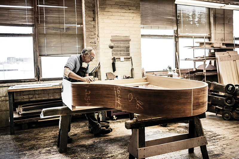 ستاينواي آند سونز تبتكر في محترفها في نيويورك آلات بيانو تصنع بدرجة عالية من الإتقان الحرفي لضمان جودة صوتية متميزة.
