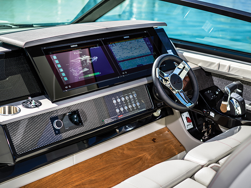 جُهّز الطراز الجديد، بدلًا من دفة قيادة تقليدية على متن القارب، بنظام قيادة مكوّن من شاشتين تعملان باللمس بحجم 16 بوصة، ومبتكر في تصميم يذكّر بشاشات العرض في مركبات تيسلا، ولكنه يشتمل على واجهات تفاعلية مصممة بحسب الطلب خصيصًا للاستخدام البحري. يقول فوس: "إن هذا النظام يتجاوز حدود مراقبة البطاريات إلى حد كبير. لقد صممناه بما يتناسب مع أوجه استخدام الزبائن لقواربهم. يمكنهم التحقق من مقدار الطاقة التي يستخدمونها ومعرفة إذا ما كانت كافية لدعم أنشطتهم في هذا اليوم."