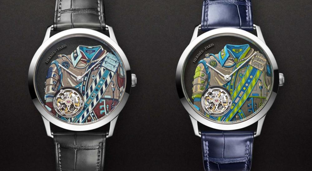 تستقي الساعة رموزها من الوشاح الذي ابتكرته المصممة كاتي ليثام بتكليف من هيرميس عام 1972، والذي استلهمته من سترة عسكرية موشّاة تعود إلى القرن التاسع عشر. ليست هذه المرة الأولى التي تتفرد فيها إصدارات Slim d’Hermès بصور مدهشة مستحدثة بوساطة أعرق الحِرف الفنية المعروفة، ولكنها المرة الأولى التي تجتمع فيها صورة على هذا القدر من التعقيد بآلية التوربيون ضمن هذه المجموعة.