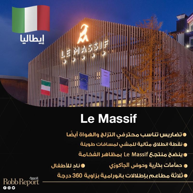 يمكن لمحبي التزلج الذين يقدرون الفخامة والرقي أن يختبروا روعة قمة جبل مون بلان من زاوية أخرى يتيحها منتجع Le Massif في منطقة كورمايور الإيطالية، التي تجمع بين تحديات التضاريس الأنسب لمحترفي التزلج وللهواة أيضًا. فالفندق يحتل موقعًا مثاليًا بين جبال الألب، ويُعد نقطة انطلاق مثالية للمشي لمسافات طويلة خلال الصيف والتزلج في الشتاء.