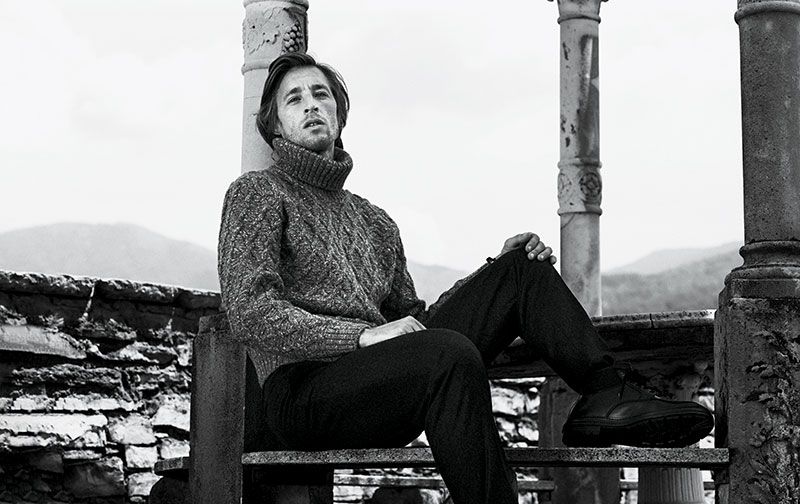 سترة مزدوجة الصدر من الصوف من Drumohr، وسترة مشغولة من الكشمير والحرير من إرمنيجيلدو زينيا، وسروال من تودز، وحذاء من جلد العجول من جون لوب، ووشاح من الكشمير الناعم من إيسايا، وحزام جلد من جورجيو أرماني، وساعة Portugieser Perpetual Calendar من أي دبليو سي شافهاوزن.